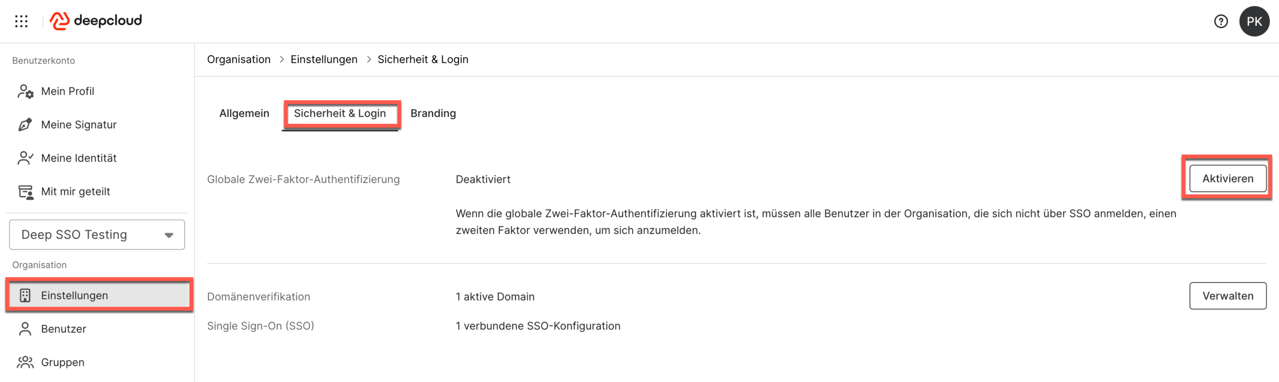 Die Einstellung kann in den Organisationseinstellungen unter „Sicherheit & Login“ aktiviert werden.