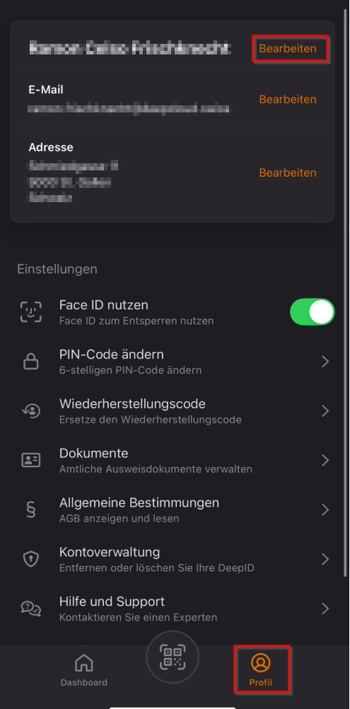 In der DeepID-App unter «Profil» gibt es die Möglichkeit, diverse persönliche Daten zu überarbeiten.
