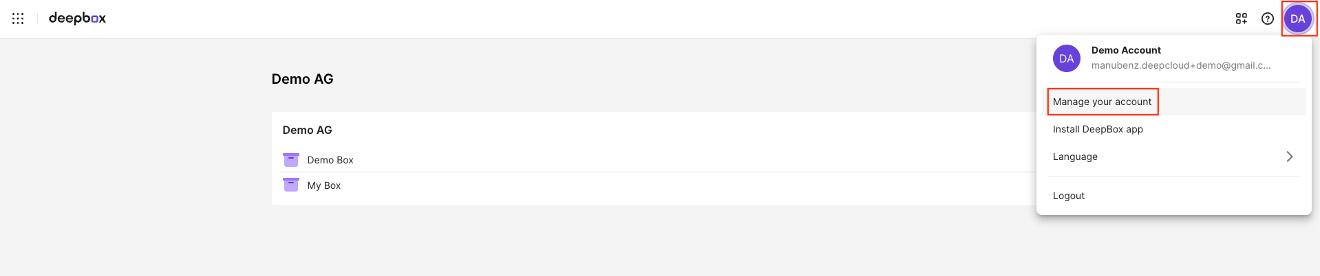 The DeepBox can be individually structured using sections. These sections can be managed in the account management under the “Boxes” tab. The sections can be accessed ...