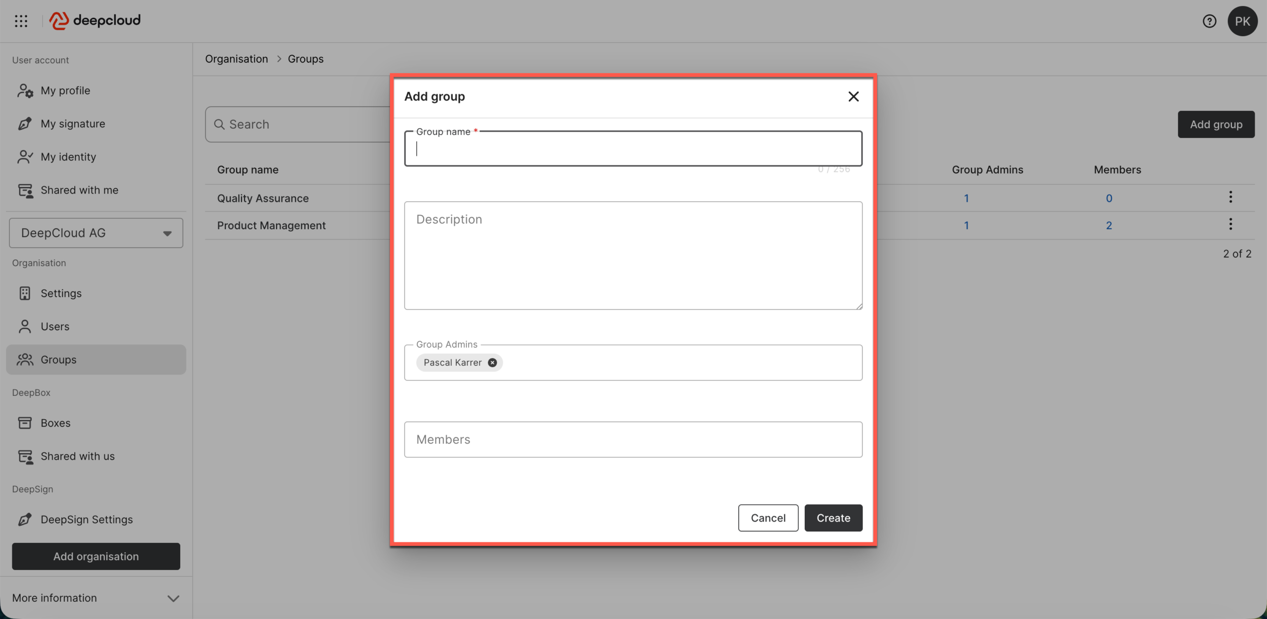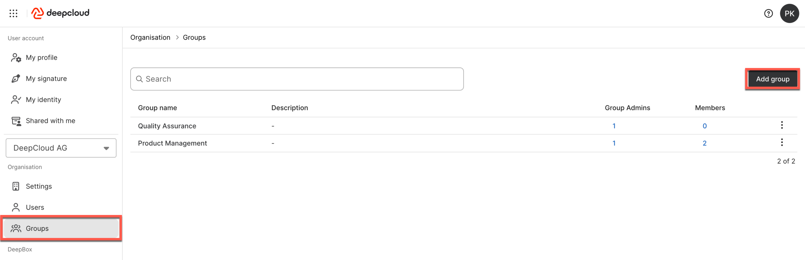 Use DeepCloud groups to efficiently manage permissions in DeepBox and DeepSign:
