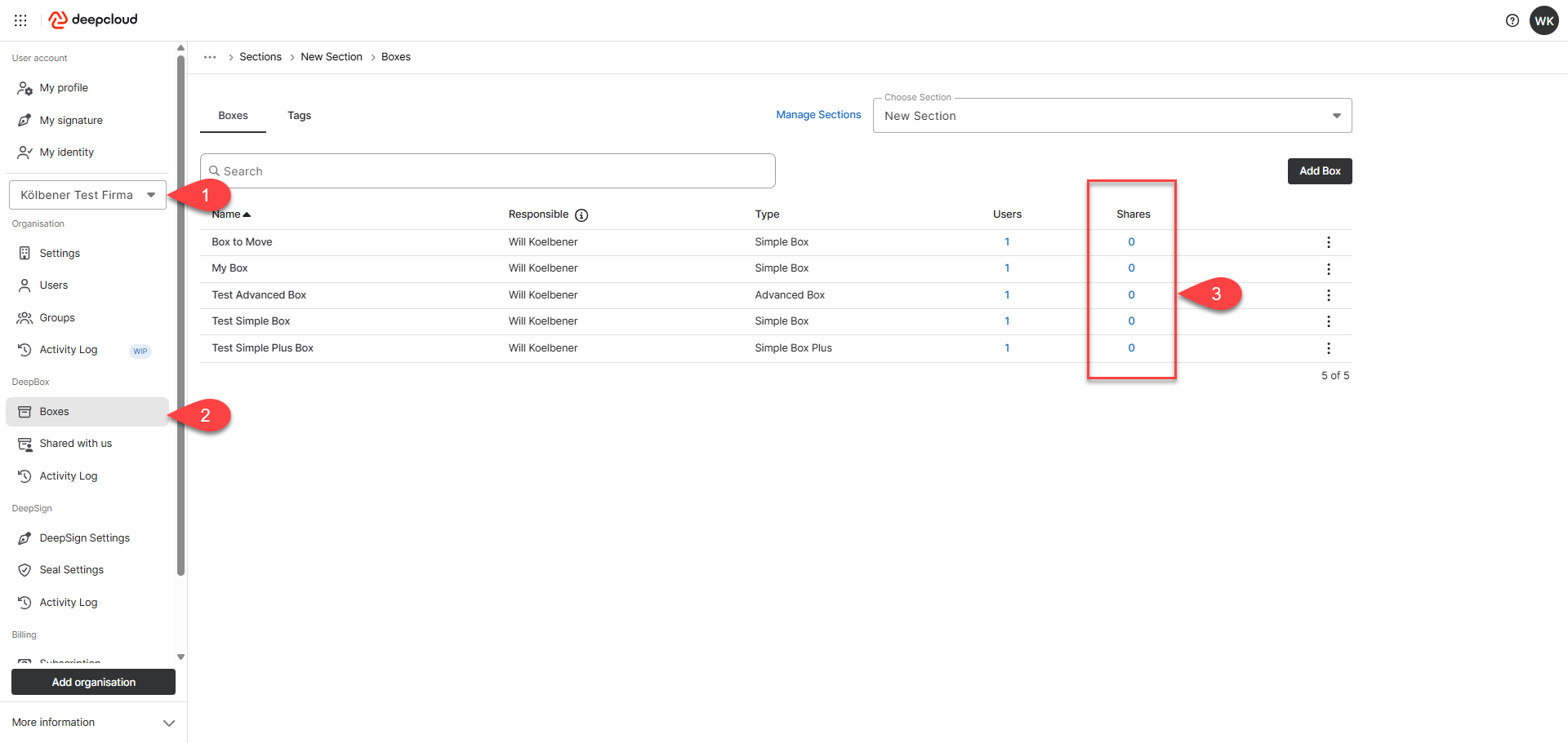 - In the DeepBox section, open the “Boxes” menu item