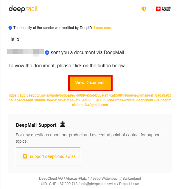 After successful verification, you will have immediate access to your personal DeepMail account and can view the received document.