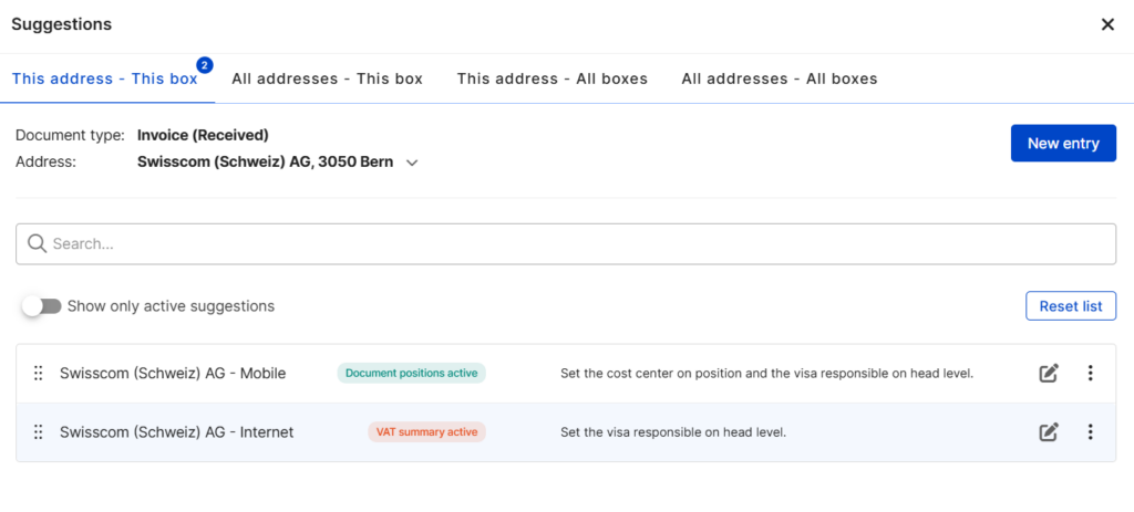 With “Suggestions”, different field values can be set in the document based on recognition characteristics – both at header and item level.For example, an invoice...