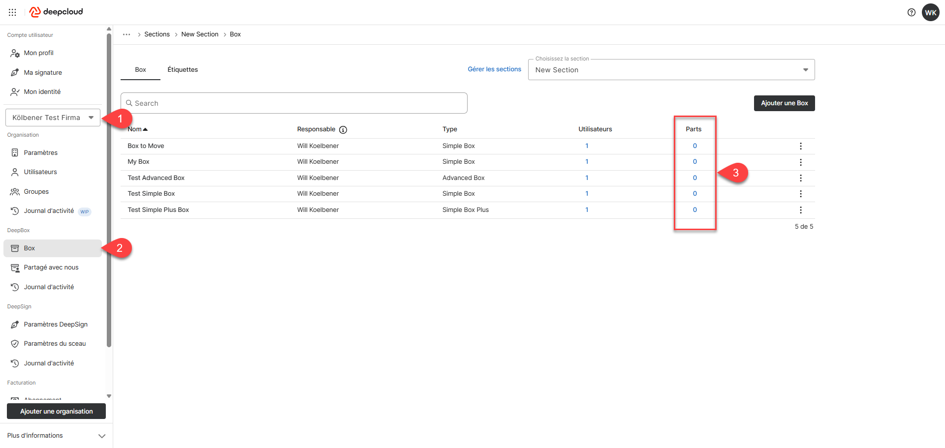 - Dans la section DeepBox, ouvrir le menu « Box »