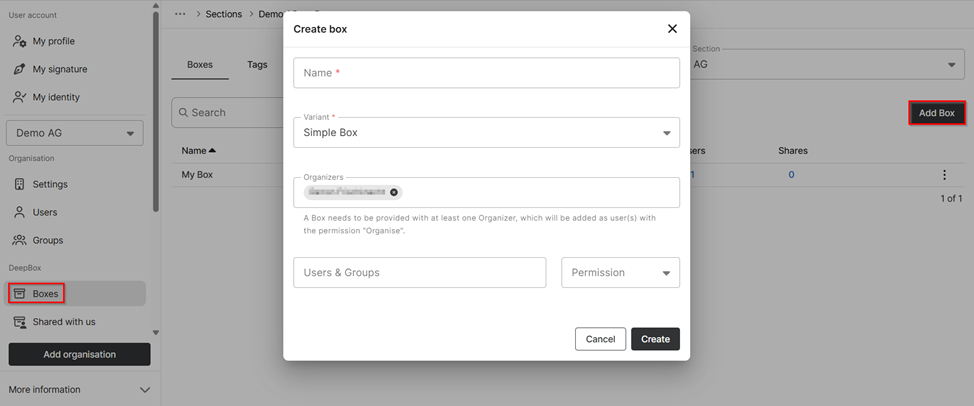 Per concedere a nuovi membri o gruppi l’accesso e i diritti corrispondenti ai box di DeepCloud, procedi come segue: Apri la gestione dell’account (DeepAdmin) tramite il...