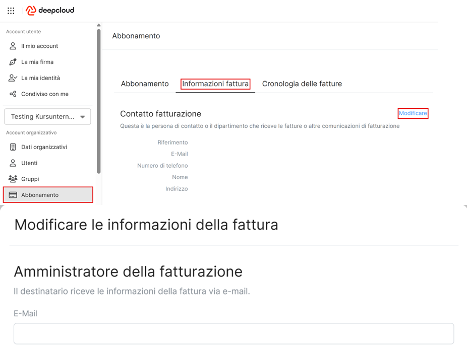 Il metodo di pagamento può essere personalizzato nella gestione dell’account alla voce “Abbonamento” > “Informazioni di fatturazione”. Il pulsante...